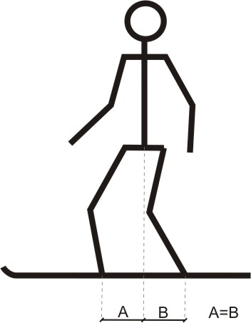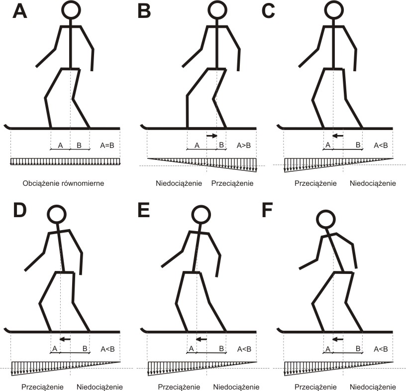 Projection of the center of gravity on board must be half a distance between bindings. To much weight on front binging will lighten tail od board, which allow pushing tail your board by torse counter-rotation, which is one of the biggest mistake.
