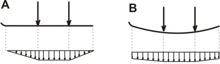 When riding a board, during a turn, board is bent. Maximum fo force is between bindings. The closer to board nose and tail, the force is smaller.