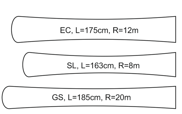 Slalom are quick dynamic turns with a small radius, with less speed so boards are shorter and have a small radius.