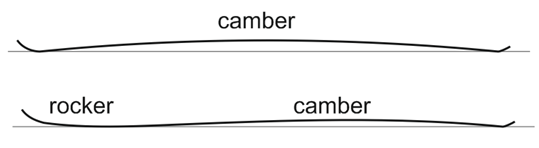 "Classic" boards were "camber". When board on the ground, the center is lifted a few cm above ground level. Rocker is the opposite.